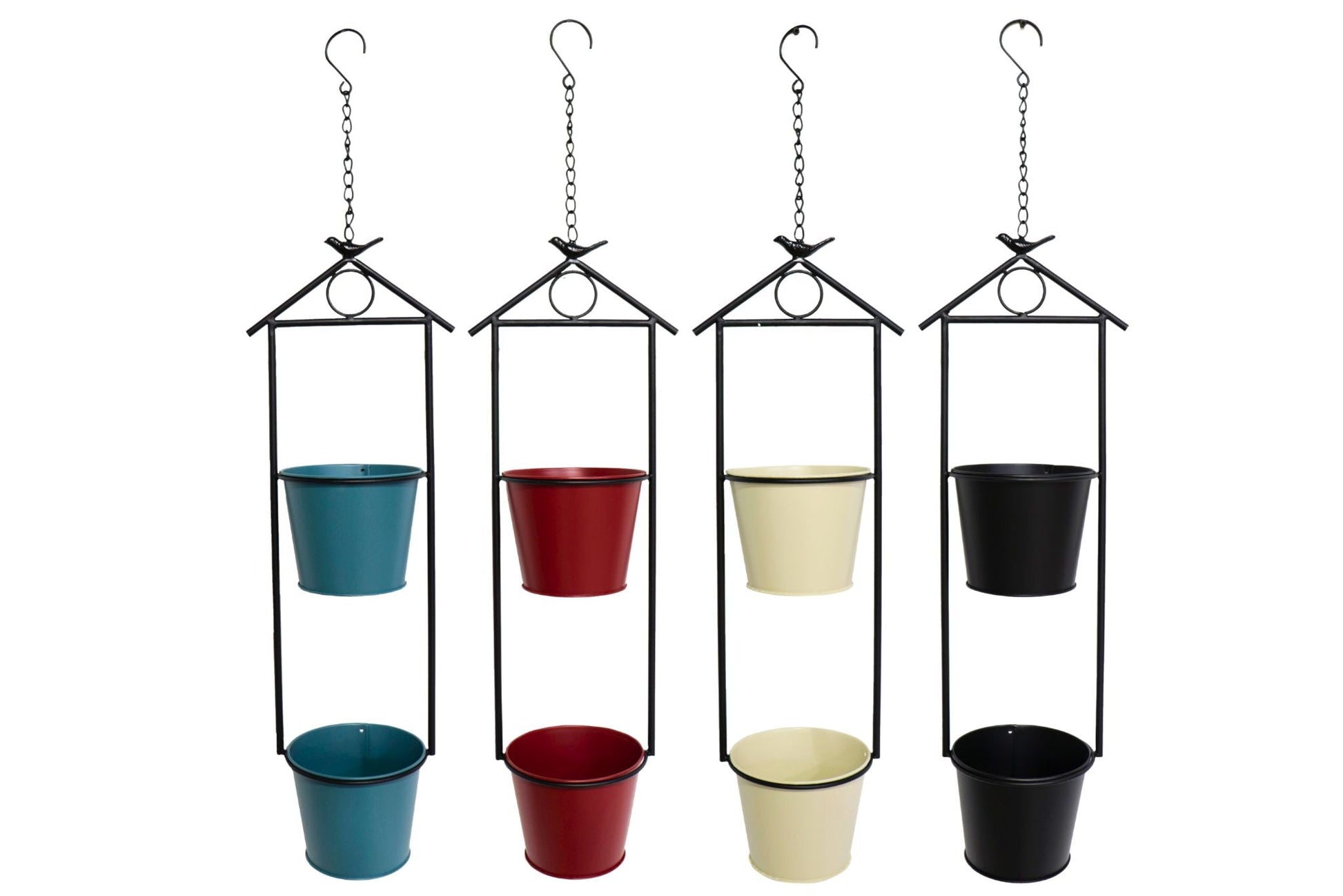 9316598002601 Metal Hanging Double Garden Pots 88cm 4 Asstd