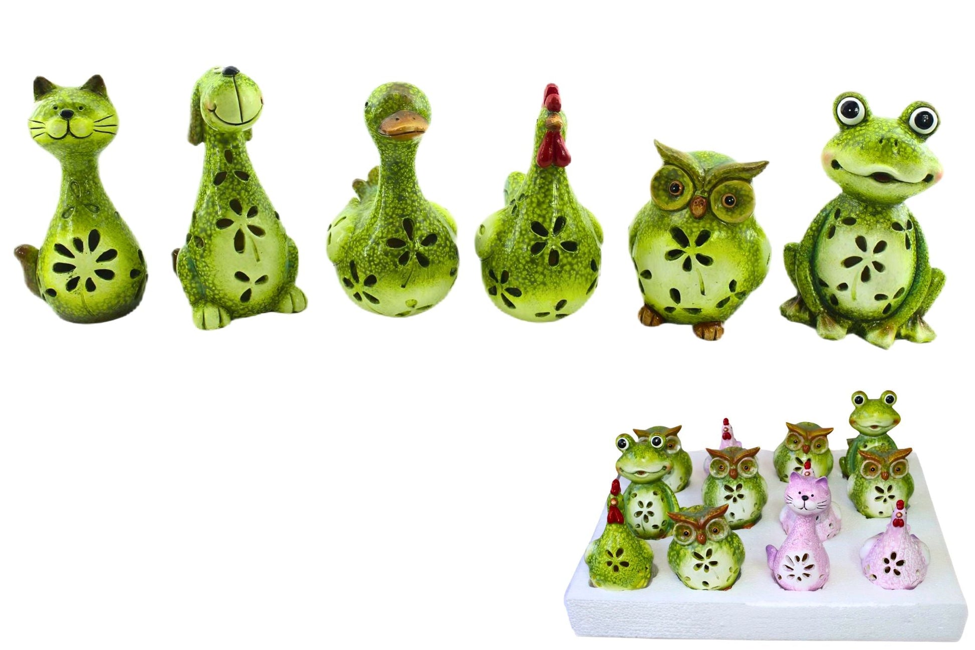 9316598000270 Polyresin Animal Green 17cm 6 Asstd PDQ