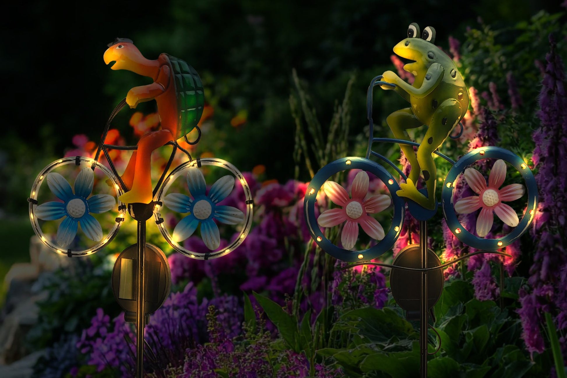 Solar Turtle/Frog Riding Bicycle Stake 93x24cm 2 Asstd PDQ