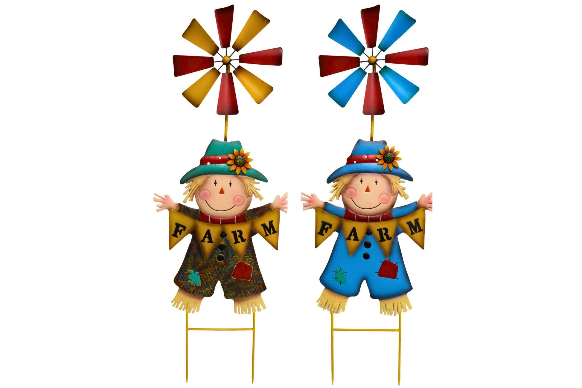 9316598002694 Metal Scarecrow w/Wind Spinner Garden Stake 128cm