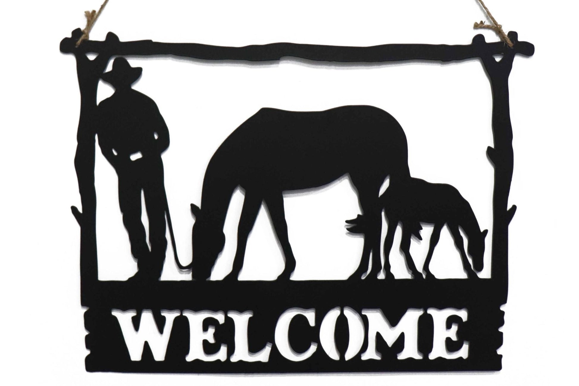 Metal Wall Art Cowboy Horse Welcome 36x49.5cm