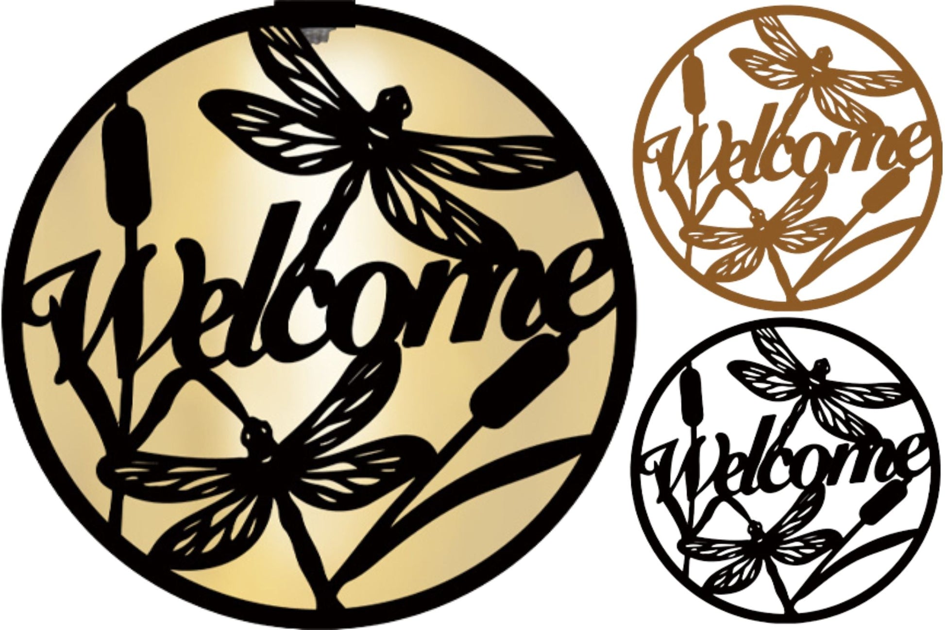 2x 32cm Metal Welcome Dragonfly Black/Rust -