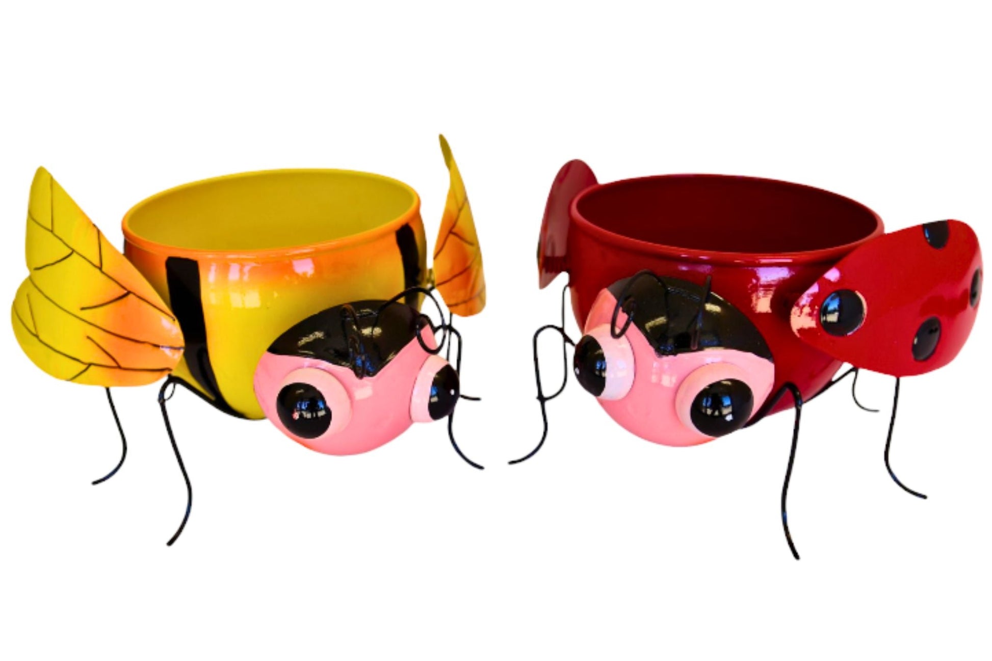 0793618018207 Bee/Ladybug Metal Flowerpot 14.5x5x17x20cm 2 Asstd