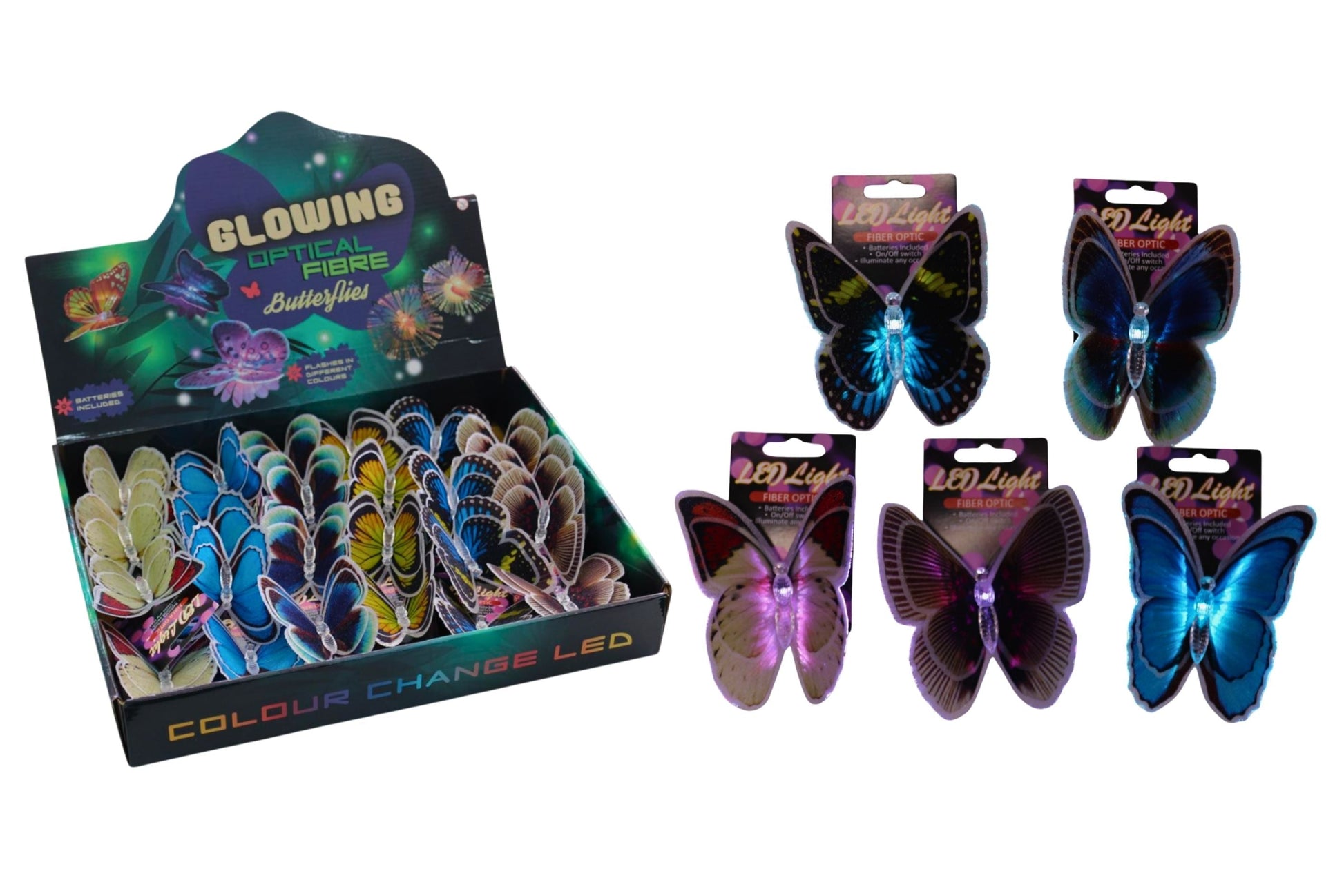 Fibre Optic Butterfly 10.5x9cm 6 Asstd