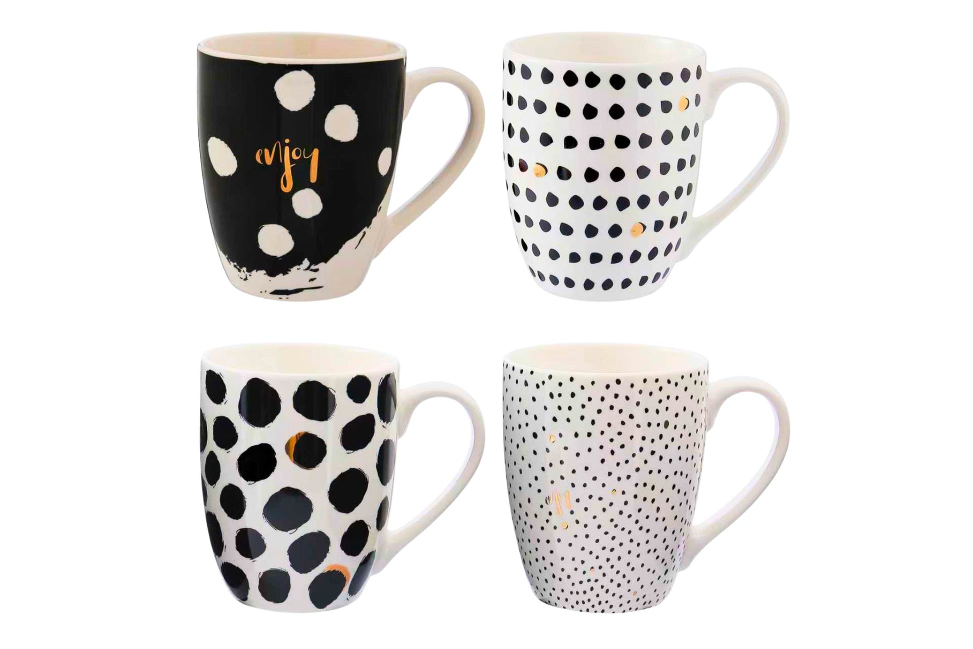 0793618033637 Ceramic Mug Black&White Polka Dots 8.3x10.3cm 4 Asstd
