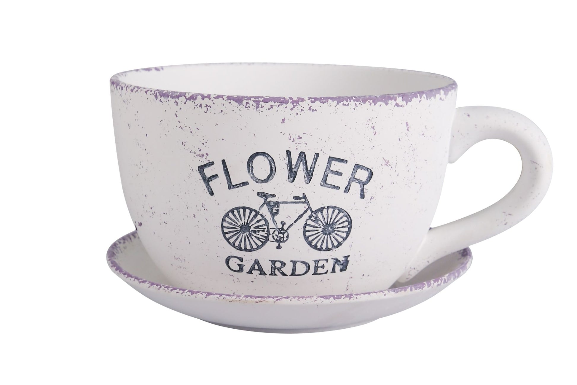 0793618035204 Ceramic Flowerpot Cup&Saucer Bicycle 29x15.5cm