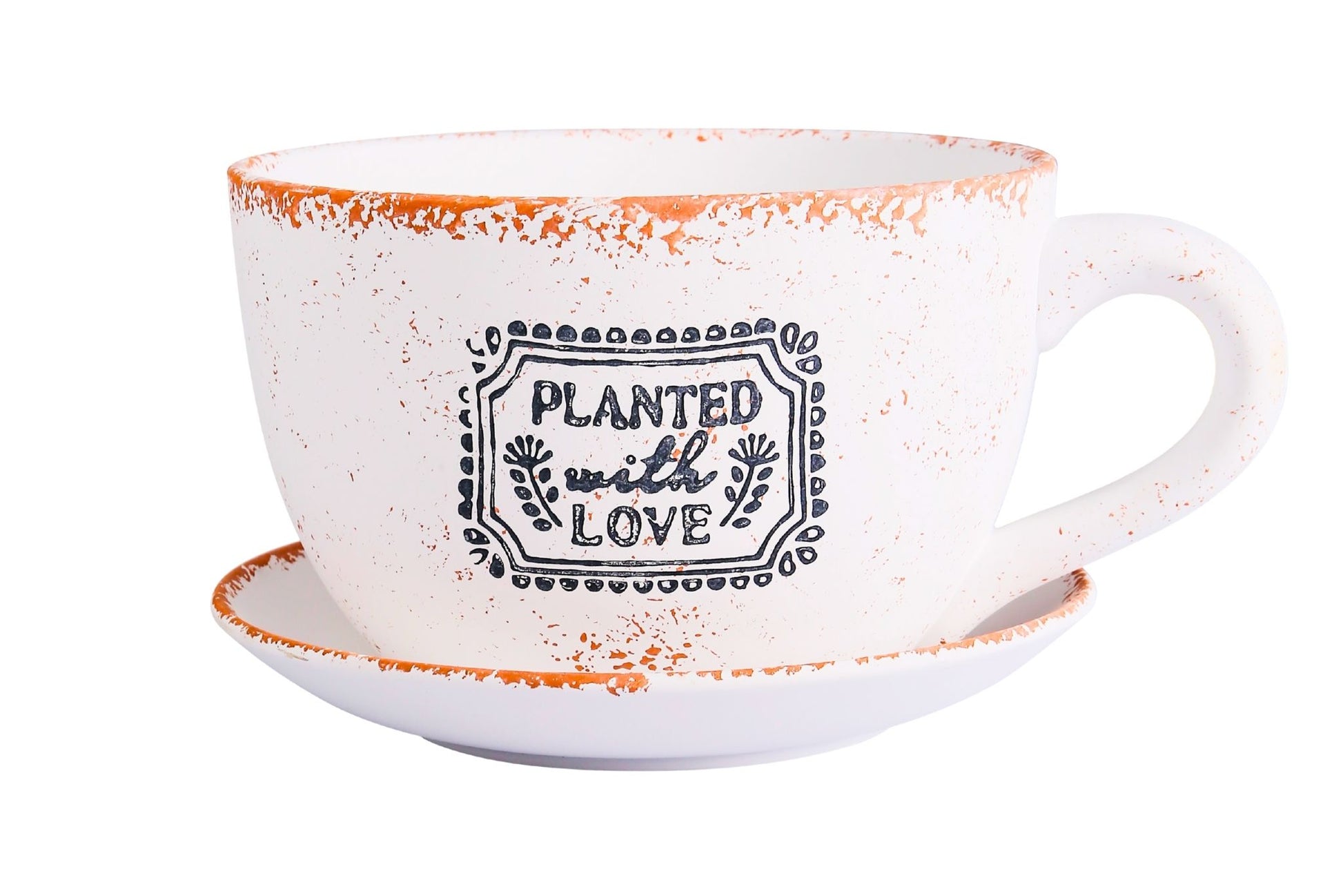 0793618035228 Ceramic Flowerpot Cup&Saucer Planted with Love 29x15.5cm