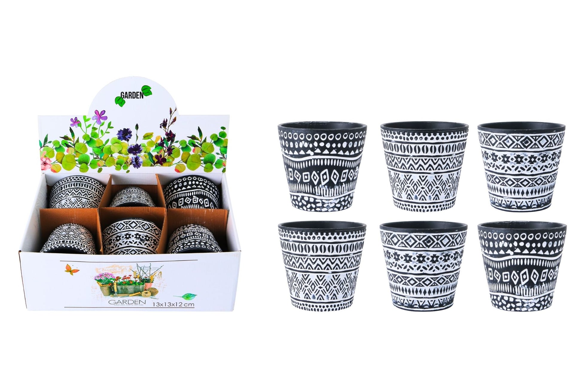 0793618035303 Ceramic Flowerpot B&W 12.5x12cm 3 Asstd PDQ