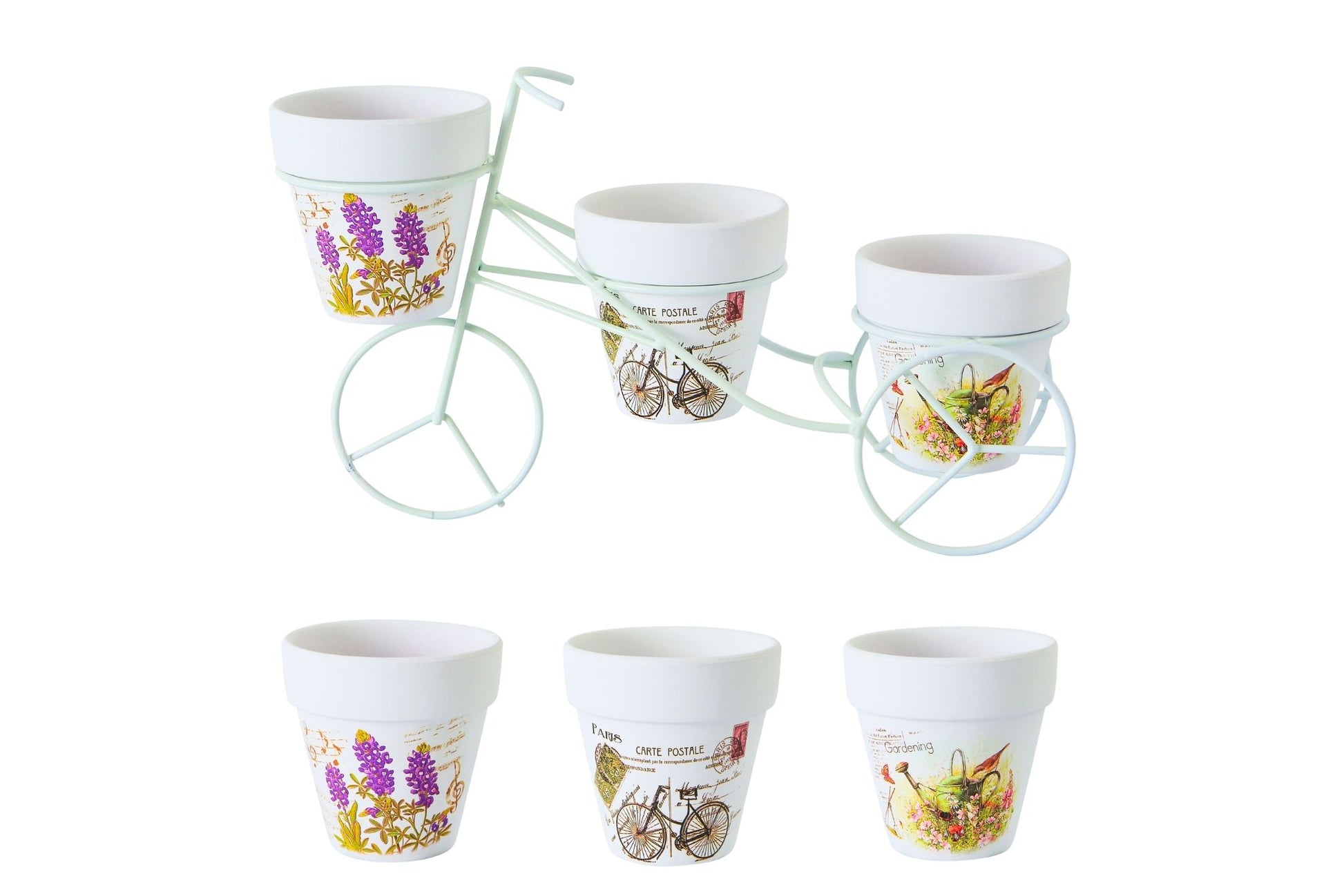 0793618035556 Bicycle White Frame Flowerpot 33x20cm